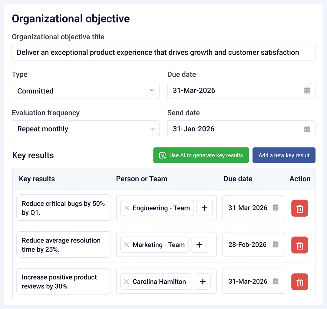To drive sustainable business growth, organizations need more than static goals and lagging indicators. With AssessTEAM’s AI-driven performance management, OKRs, goals, key performance indicators, and reporting work together in real time to keep teams aligned and on track.
