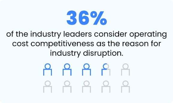 According to proven research, 36 percent of the industry leaders consider operating cost competitiveness as the reason for industry disruption.